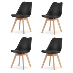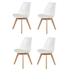 Zestaw 4 krzeseł. Designerskie Krzesło z wygodnym siedziskiem z polipropylenu i drewnianymi nogami idealnie wpisuje się w stylistykę nowoczesnego wnętrza.